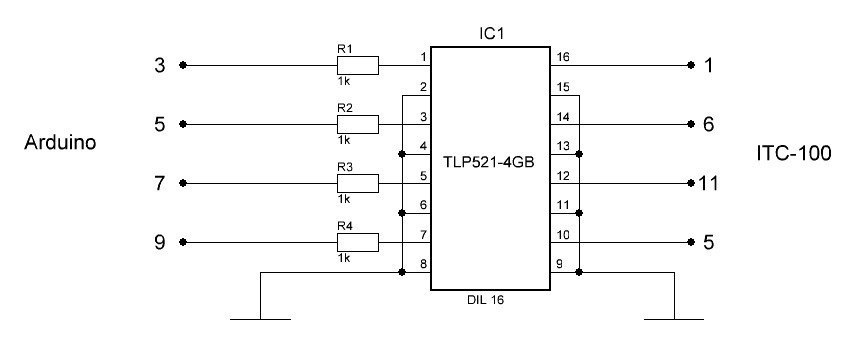 На 4 канала схема состоит из оптотранзистора и 4-х резисторов по 1кОм.