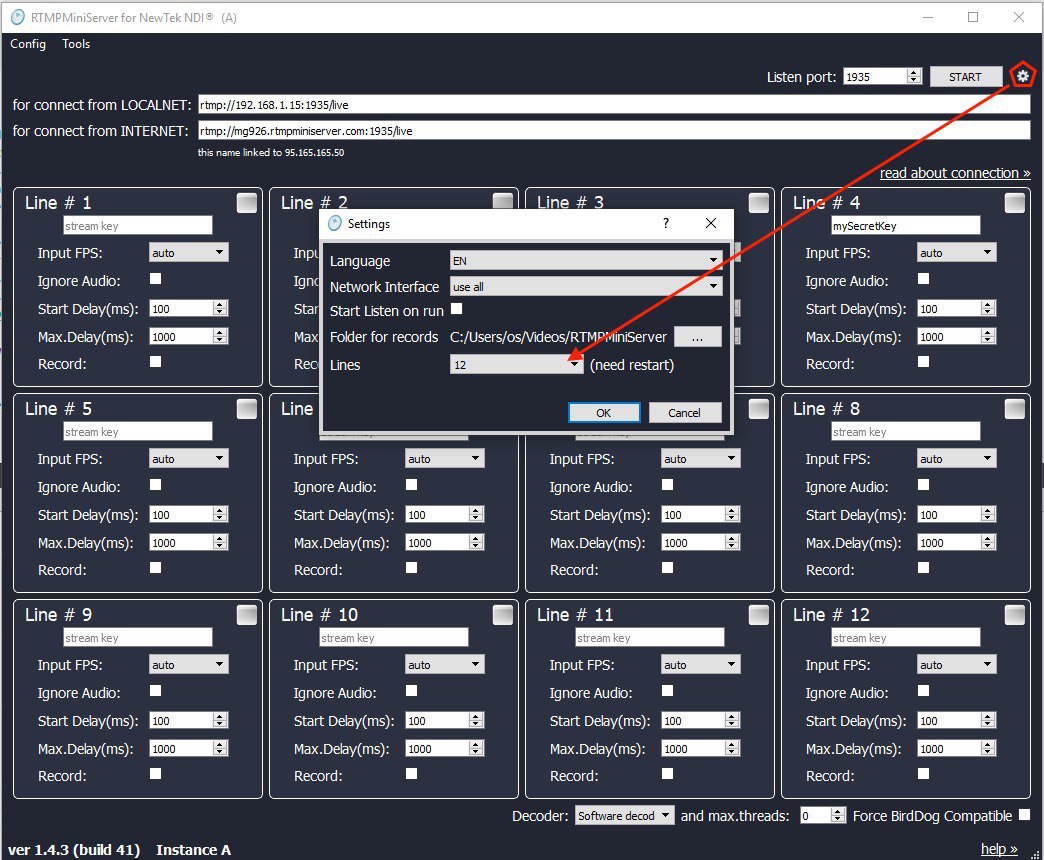 В новой версии 1.4.3 можно добавить 16 (!) потоков видео и преобразовать их в 16 NDI сигналов.