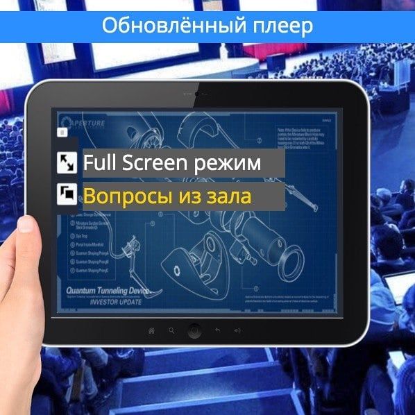 Зрители могут смотреть презы на своем смартфоне, могут задавать вопросы спикеру через веб браузер (!!!!).