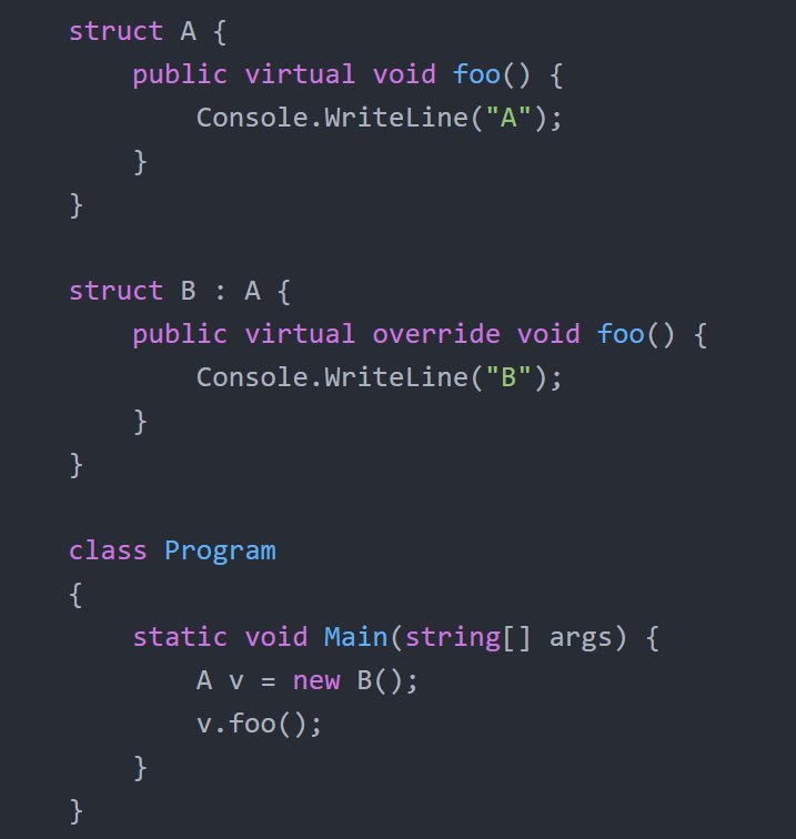 2. Структуры могут быть унаследованы только от интерфейсов.