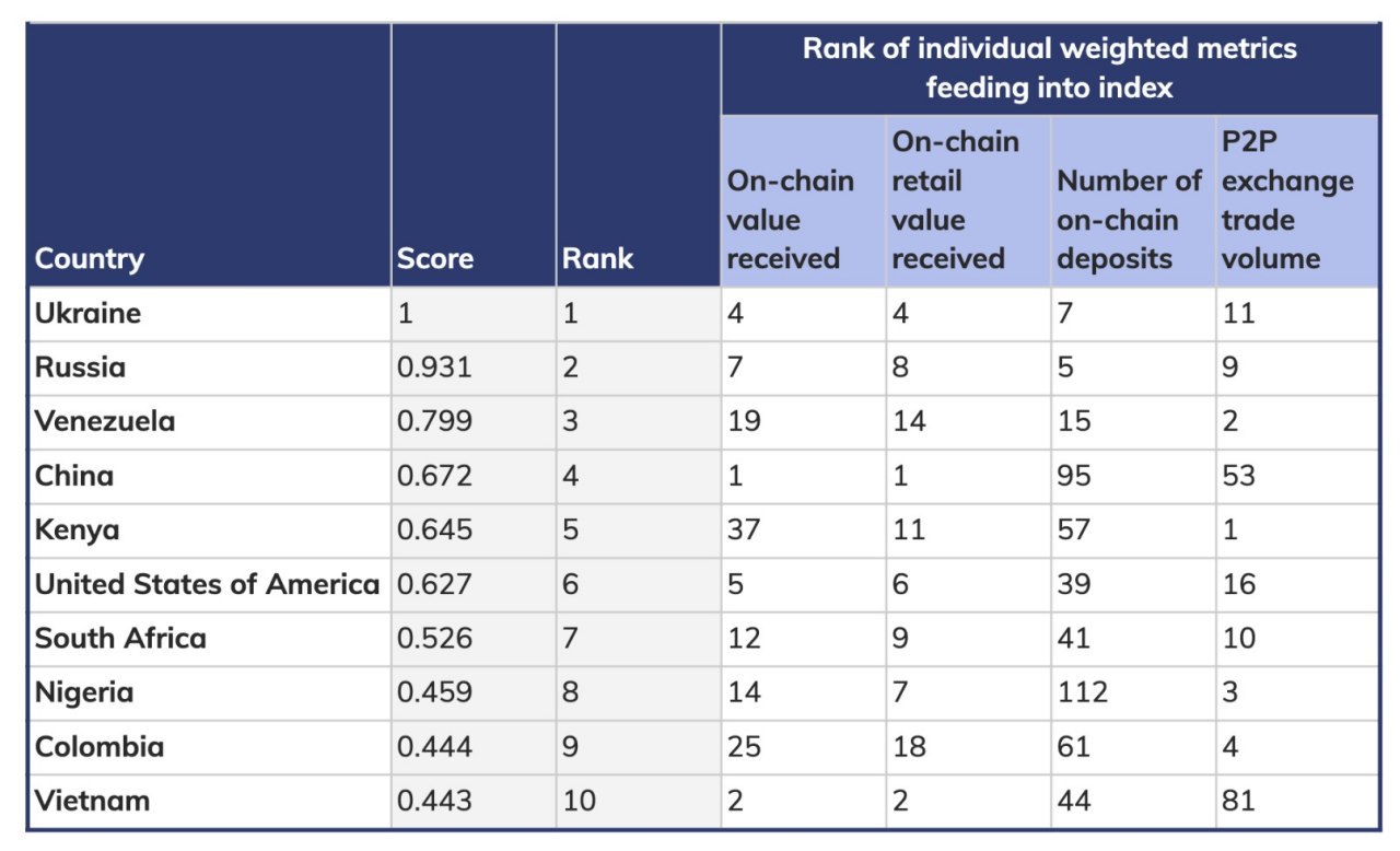 Украина и Россия вышли в лидеры глобального индекса принятия криптовалют.