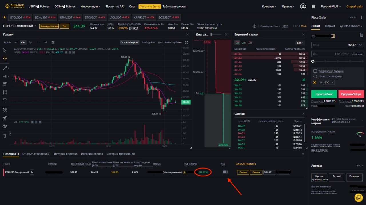 С прошлого обзора мало что изменилось! Рынок по прежнему слаб и коррекция продолжится. Думаю со следующей недели биткоин пробьет 10 000$ и закроет гэп на 9600$ на СМЕ! Скорей цену сквизом опустят аж к 9500$ где много стопов и курс тут же уйдет в район 9000$. Сделать это очень легко, так как сейчас ни по BTC ни по топовым альткоинам обьемов нет вовсе! Кстати, ранее я уже предполагал, что коррекция как на фондовом, так и на криптовалютном рынке начнется осенью, что успешно и произошло. Мои действия: в прошлом обзоре я показывал как открыл шорт по Ethereum и первая цель была 320-300$. Так вот, цена дошла ровно в этот диапазон к 310$, но сделку я не закрыл так как это был сильный уровень и тут же произошел отскок. В данный момент прибыль по сделке составляет +30% и индикатор ADL намекает мне закрыть ее иначе это произойдет автоматически. ADL - это типу резервного фонда биржи откуда она платит средства по успешным сделкам трейдеров с кредитным плечом, но когда индиктор полностью закрашен, значит средства в фонде заканчиваются и сделка закроется автоматом. Поэтому, скорей я сделаю это сам, зафиксирую прибыль и тут же открою новый шорт со второй целью в 240-200$, о чем говорил в прошлом обзоре. Подробная инструкция как торговать фьючерсами и открывать лонг/шорт с кредитным плечом есть на канале. Кстати, скоро выйдет ролик о том, где ждать дно у биткоина и топовых альткоинов.