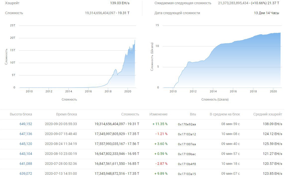 В это воскресенье произошел очередной перерасчет сложности майнинга в сети биткоина, в результате которого значение достигло нового абсолютного максимума. По данным BTC.com, на блоке 649 152 сложность увеличилась на 11,35% до 19,31 T. Предыдущий рекорд был установлен 24 августа на отметке 17,56 T. Столь существенное увеличение стало результатом высокой скорости добавления блоков в блокчейн на предыдущем отрезке. В течение двух последних недель один блок добавлялся в среднем раз в каждые 8 минут 59 секунд при целевом значении в 10 минут. Механизм подстройки сложности призван корректировать отклонения от нормы путем изменения требований к осуществляемым майнерам вычислениям. Данные свидетельствуют о том, что оценочное значение среднего хешрейта биткоина за 7 дней продолжает расти. Сейчас оно составляет более 143 EH/s, также находясь на новых максимумах, а в моменте недавно превышало 153 EH/s.