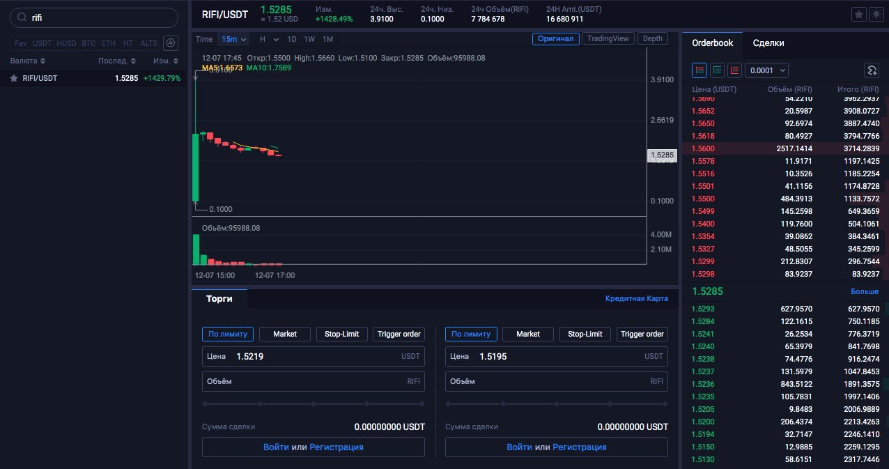 ⚠️На Huobi Global стартовали торги RIFI. Цена достигала отметки 3,91$, но реально монеты можно было продать по 2,5$. Честно говоря это был позорный для криптобиржи токенсейл и вот почему: