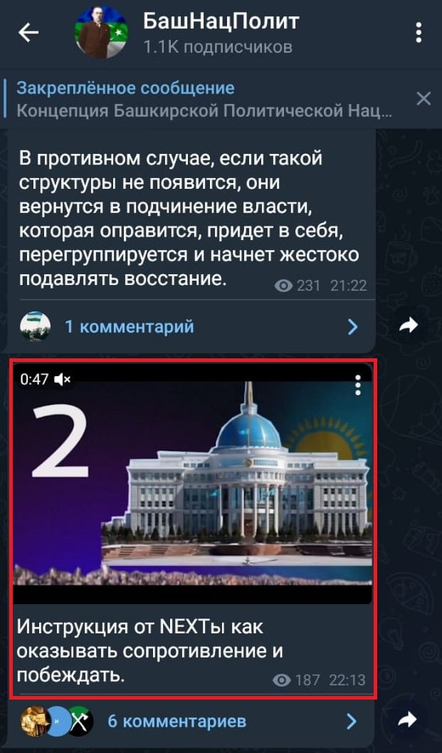 На скриншоте прилагаем телеграм-канал башкирских националистов из России, заигрывающих с теорией превосходства башкирской нации над другими, сепаратизмом и исламским радикализмом. Пока идут беспорядки в Казахстане, канал распространяет боевые практики среди граждан России. Работает та же команда, что работала при протестах на Куш-тау в Башкортостане в августе 2020 года. Основным «пиарщиком» этого пристанища нациков является экологический телеграм канал «Куштау on-line», набравший аудитории на прошлогодних событиях. Они открыто заявляют, что следующий «Куш-тау» (а в Башкирии, как и в любом развитом субъекте планируются новые разработки земель) обернется похожими на казахстанские событиями.