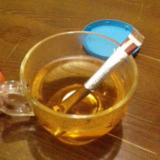На фото канала изображена чайная палочка. По факту это просто пакетик с чаем, но с более твердым перфорированными стенками, из-за чего им можно размешивать жидкость превращая ее в чай.