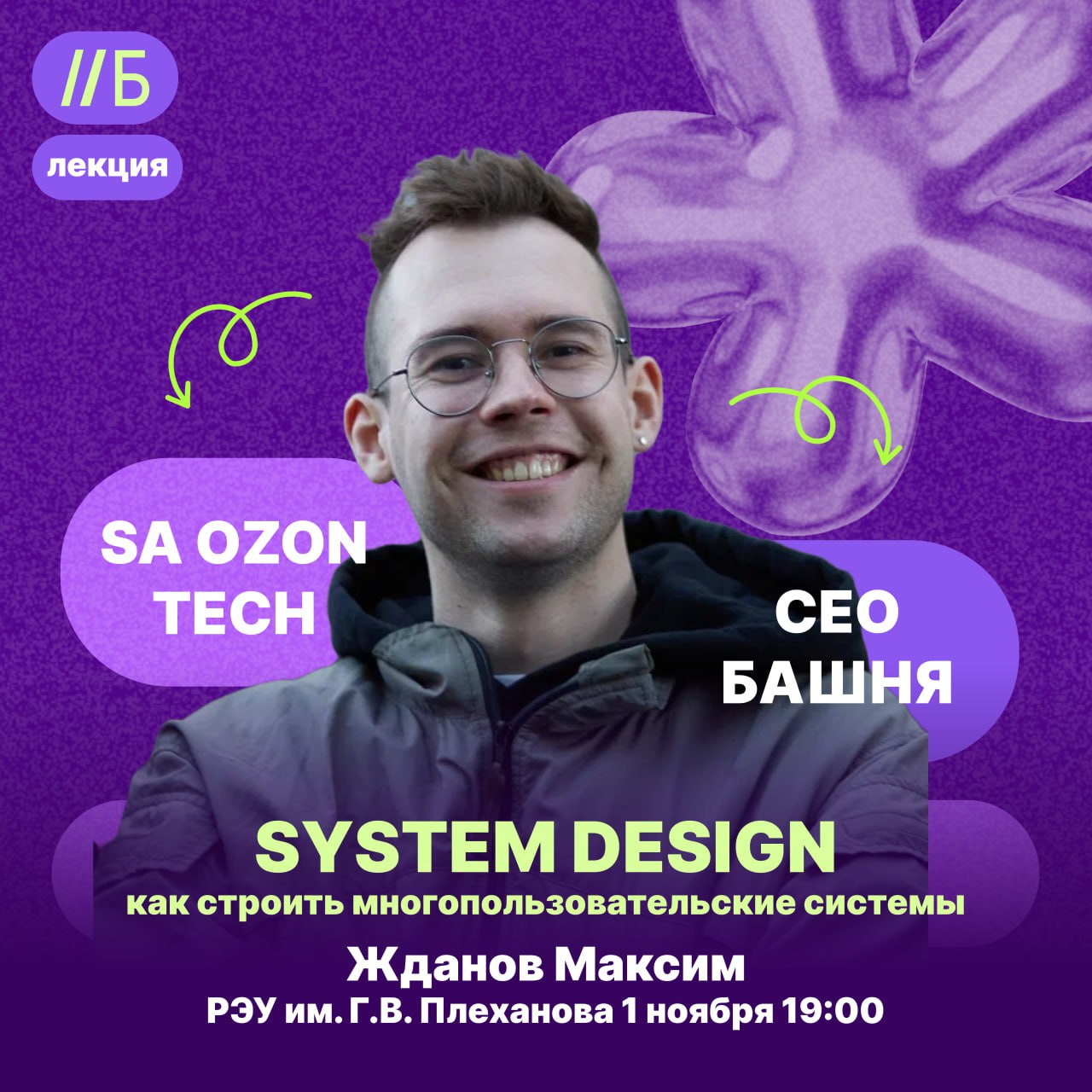 Уже скоро в РЭУ Плеханова пройдет лекция от Максима Жданова по теме System Design 🙏