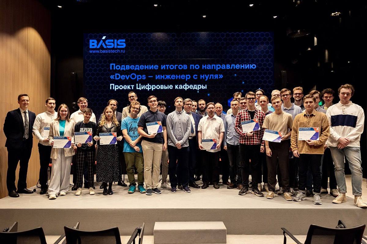 Мы пригласили к себе в офис лучших студентов программы «DevOps – инженер с нуля» и провели для них торжественную церемонию: поздравили, вручили подарки и сертификаты о завершении обучения. Максимальные 100 балов получили 27 ребят из МГТУ им. Н.Э. Баумана и РТУ МИРЭА.