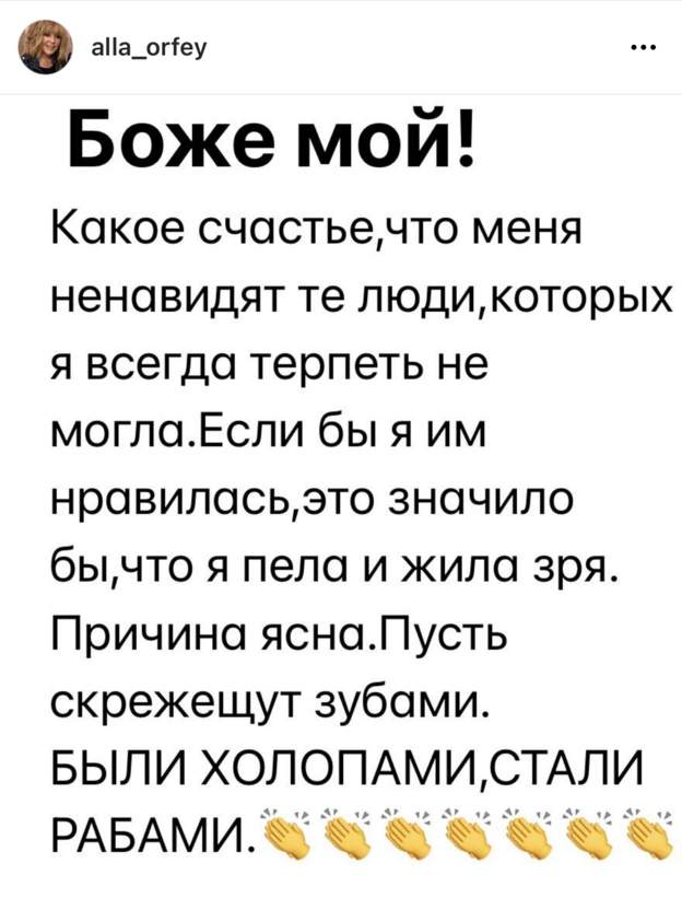 Алла Пугачева опубликовала новый пост в "Инстаграме", ответив тем, кто критиковал ее все последние месяцы.