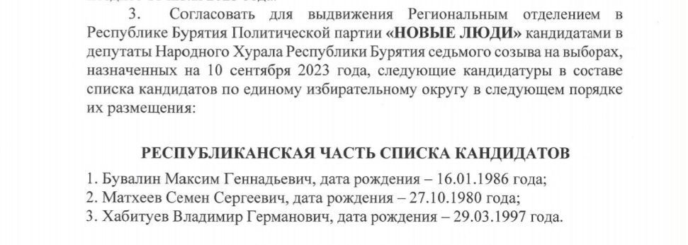 БКС уже сообщал, что третьим номером в списке "Новых людей" на выборах в Народный Хурал идет никому не известный 26-летний коммерсант Владимир Хабитуев, мама которого - предприниматель Ирина Имеева, заплатила Семену Матхееву за это место 20 миллионов рублей.