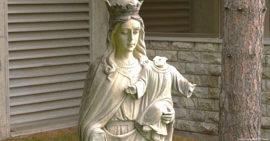 Последняя выходка - обезглавленный Младенец на руках Богоматери во дворе церкви св.Анны в городе Садбери, Онтарио.