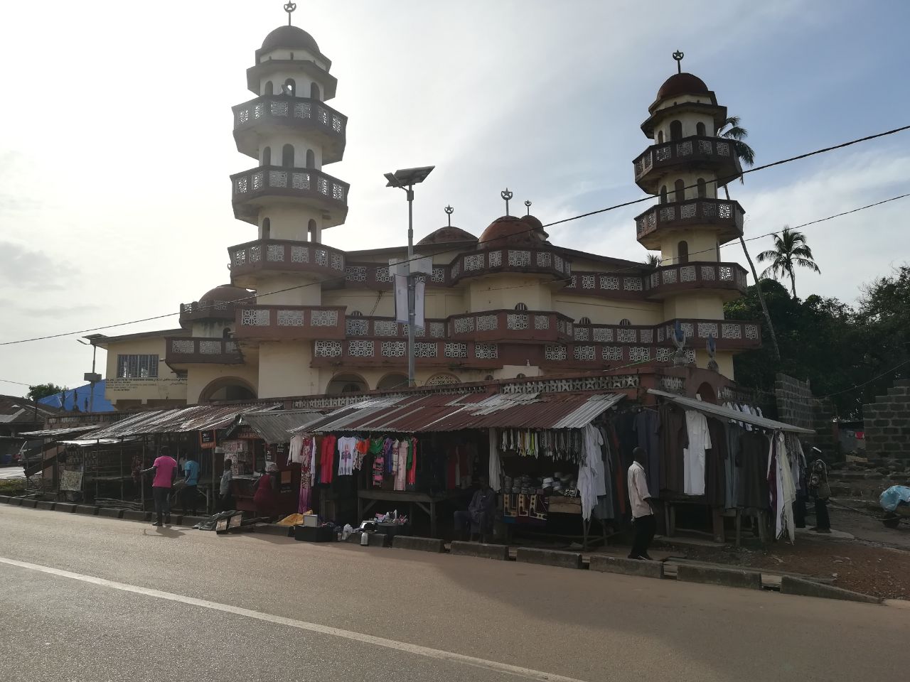 Мечетей в стране существенно меньше, чем христианских церквей, и все они похожи друг на друга. Как и положено, несколько раз в день из динамиков в населенных пунктах разносятся исламские пения, но я еще ни разу не видел, чтобы кто-то молился в это время. Когда я был в Марокко, то буквально первое, что я увидел после того, как зашёл в аэропорт с самолета - молящегося на коврике полицейского. И сразу стало понятно, что здесь территория ислама. Но в Сьерра-Леоне я не видел такого ни разу, ни в одном населенном пункте.