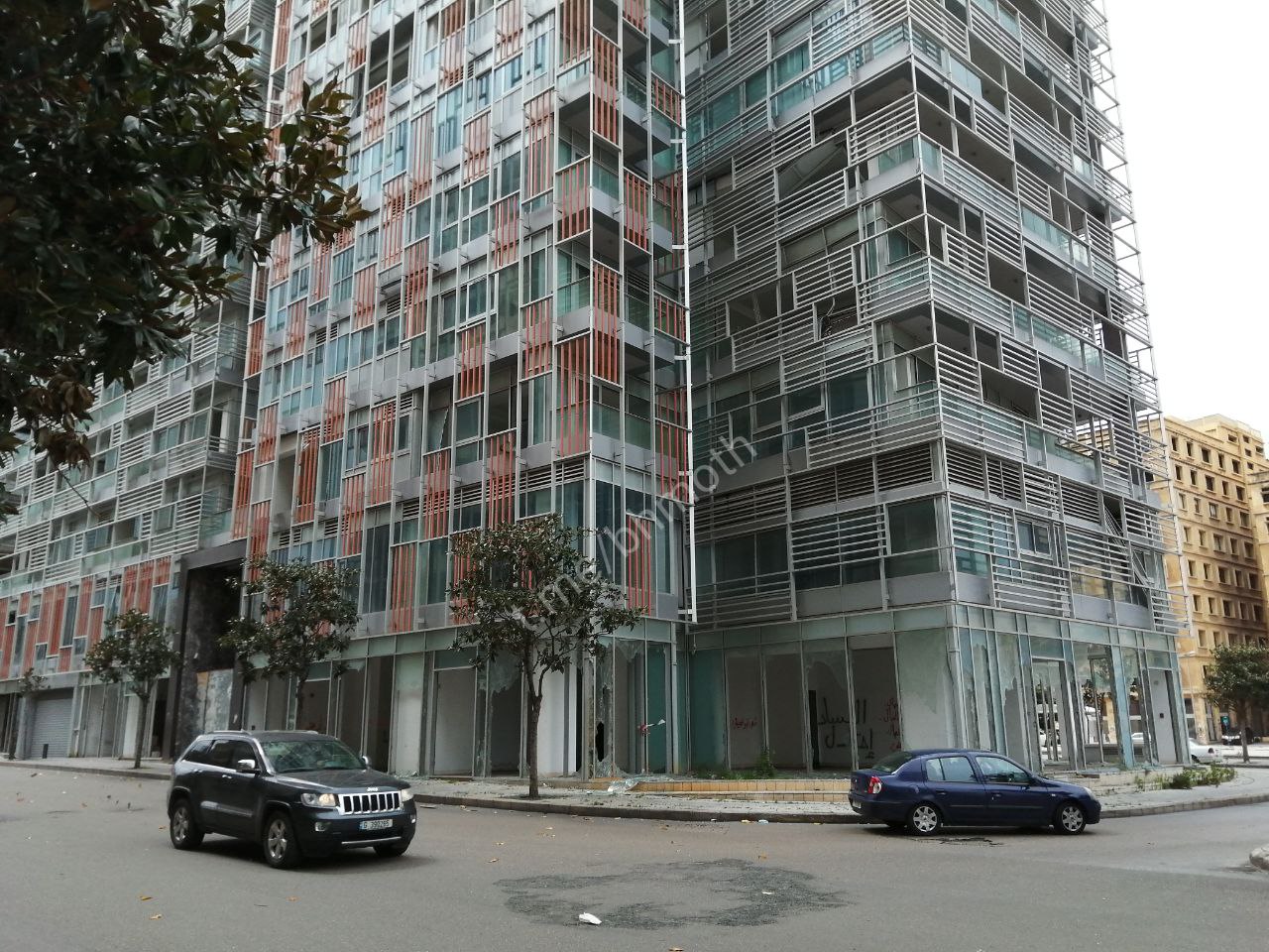 Местные жители говорят, что бизнес-объекты здесь начали закрываться ещё в 2019 г., во время массовых протестов. А дальше наступил экономический кризис, обесценивание ливанской лиры, коронавирус - вот бизнес и закрылся почти полностью, а обеспеченные люди отсюда уехали. Следы протестов сохраняются до сих пор: выбитые или заколоченные стёкла, граффити на стенах и лозунги «капитализм, сосать!», «ешь богатых!», «нахуй капитализм!». Похоже, что революционный анархо-пролетариат в своё время здесь хорошо покуралесил, выразив своё негодование привычными методами.