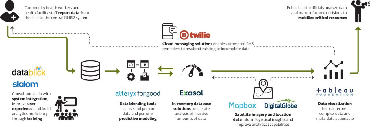 Tableau, Mapbox, Exasol и Alteryx заявили, что в течение трех лет предоставят 4,3 миллиона долларов на программное обеспечение и услуги с целью ликвидации малярии для 60 миллионов человек в Африке. В Tableau планируют пожертвовать 100 миллионов долларов на решение глобальных проблем, в том числе малярии. Инициатива «НЕТ Малярии» была запущена в 2015 совместно с PATH и правительством Замбии.