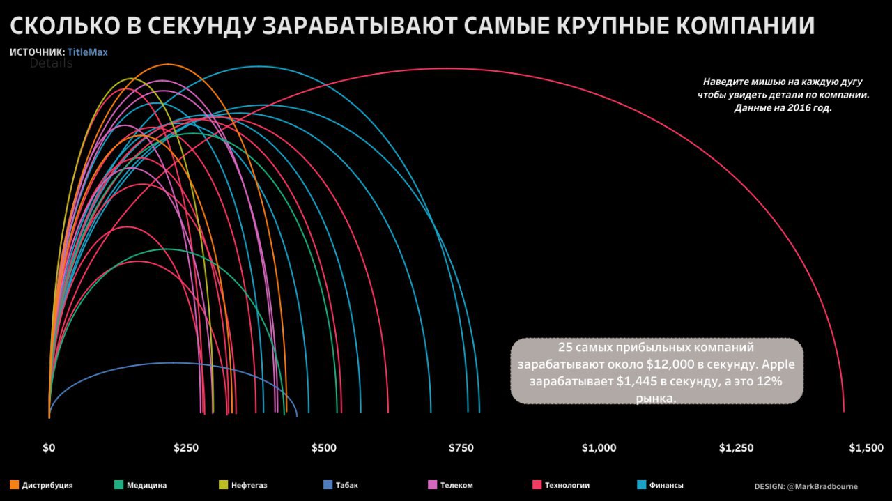 Пример дуговой диаграммы доступен тут. Даграмма показывает анализ прибыли компании из Fortune 200, данные за 2016 год.