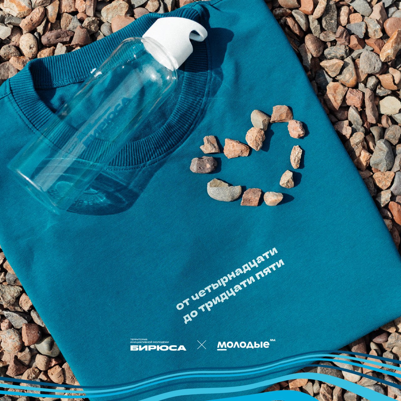 Совместно с «Мы молодые» приготовили подарки специально для сотрудников молодёжной политики: бирюсинскую бутылку и футболку «от четырнадцати до тридцати пяти» в изумрудном цвете, размер XL.