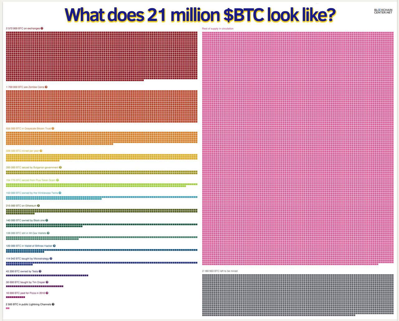 1,700,000 BTC — «зомби монеты», которые не перемещались с 2010 года между кошельками. В эту цифру входят и монеты Сатоши Накамото.