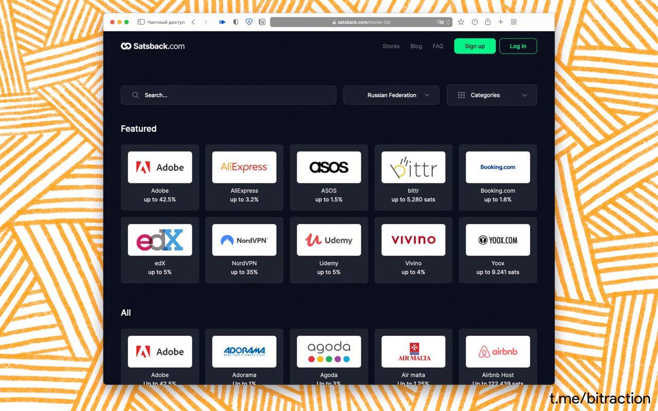 Satsback: кэшбэк, или лучше сказать, сатбэк сервис, в который тоже можно приглашать друзей и получать до 20% сатош с каждой покупки, совершенной друзьями. Минус в том, что работает это только в течении года с момента приглашения.