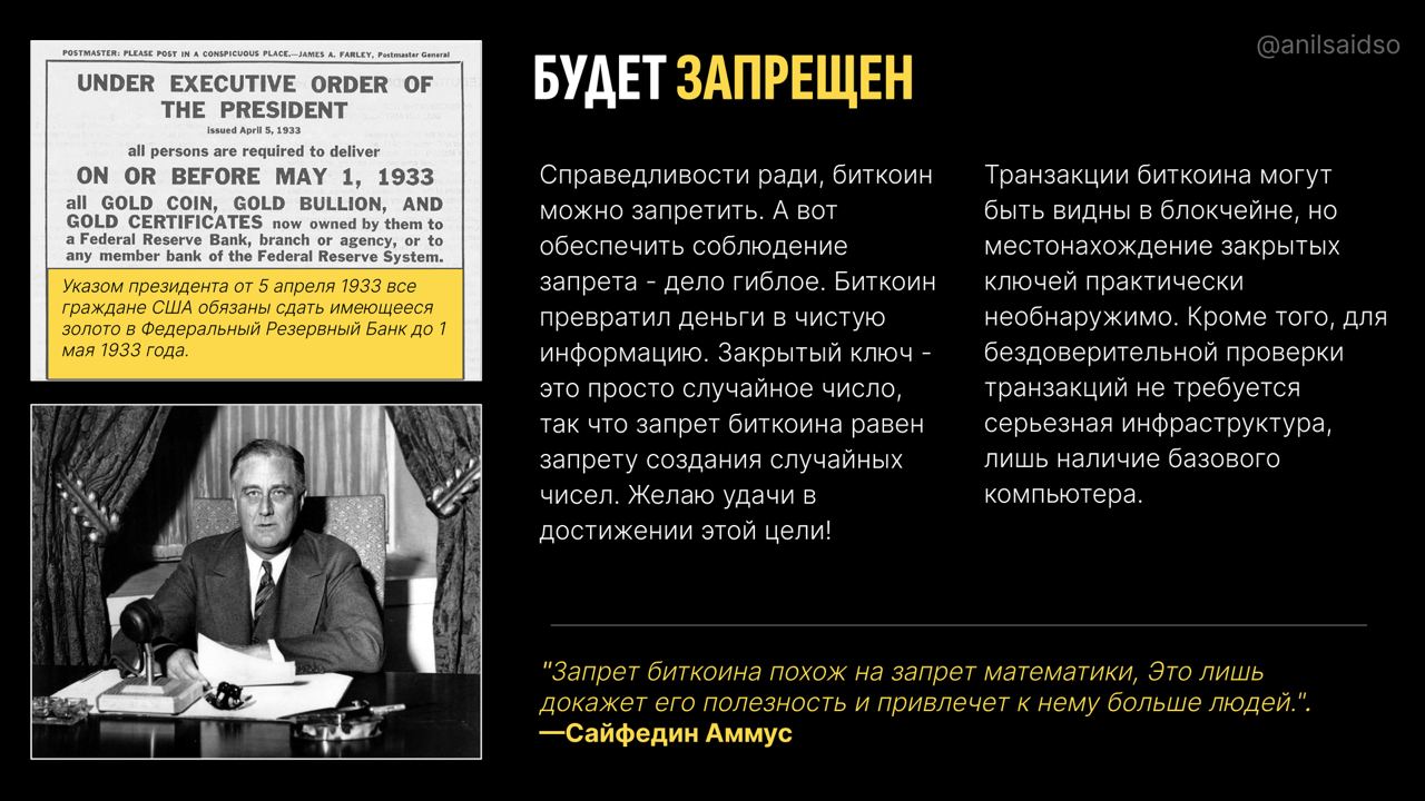 Важно отметить, что если гиперинфляция произойдет, то доллар, евро и фунт будут падать в цене, и $1 млн не будет выглядеть так, как сейчас. Мы лелеем культурный мем "миллионер", но $1M сейчас - это цена квартиры в большом городе. То, о чем мы думаем, когда говорим "миллионер", вероятно, по смыслу ближе к “ультра состоятельный человек”, чем может считаться ~$30M в активах сверх основной собственности. Итак, будет ли биткоин стоить $1М? Когда-нибудь наверняка, но я не могу сказать когда именно.