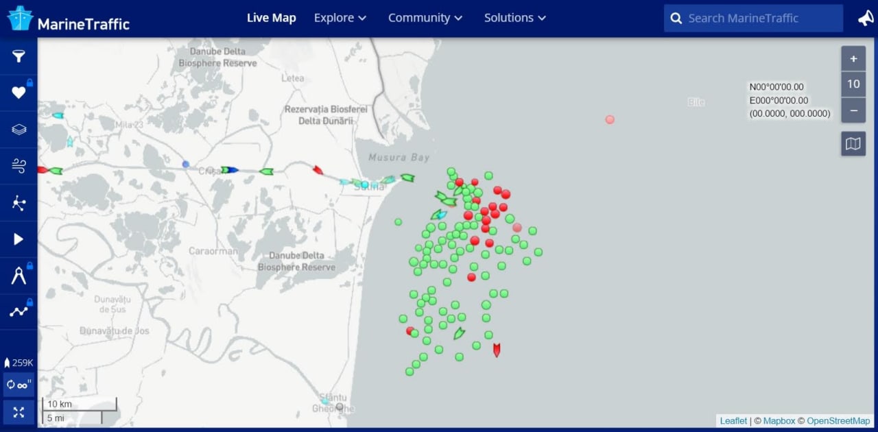Вони стоять біля румунського порту Суліна, чекаючи проведення через Сулінський морський канал. Це найзручніший і найглибший шлях до дунайських портів України, Румунії та Молдови.