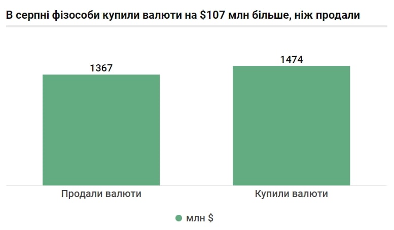 В серпні фізичні особи купили валюти на $107 млн більше, ніж продали. Водночас з березня по липень громадяни більше продавали, ніж купували.