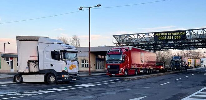 На виїзд зі Словаччини будуть пропускати по 4 вантажівки на годину. Перевезення гуманітарної та військової допомоги, живих тварин, пального та охолоджених вантажів обіцяють не блокувати.