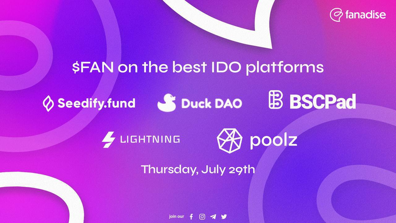 Завтра 29.07 Fanadise проведут IDO на 5 площадках, а после листинг в 19:00 МСК на Pancakeswap🔥