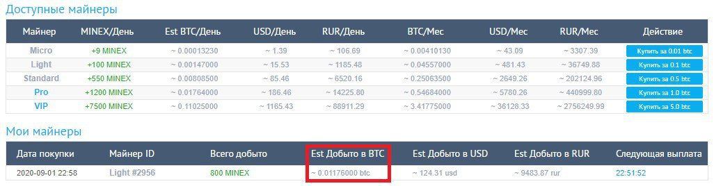 💡 Но самое интересное, что доход от майнера начисляется в токене Minex. Когда я покупал майнер, токен Minex стоил около 1170 сатош, а сейчас его цена 1470. Тоесть, за счёт роста самого токена, можно заработать ещё больше, не продавая его сразу.