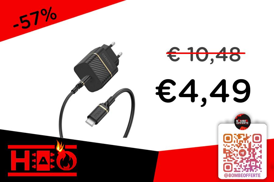 🔌 OtterBox USB-C Bundle | Caricatore da muro 20W PD + Cavo USB C-C 1m | Fast Charge, Nero