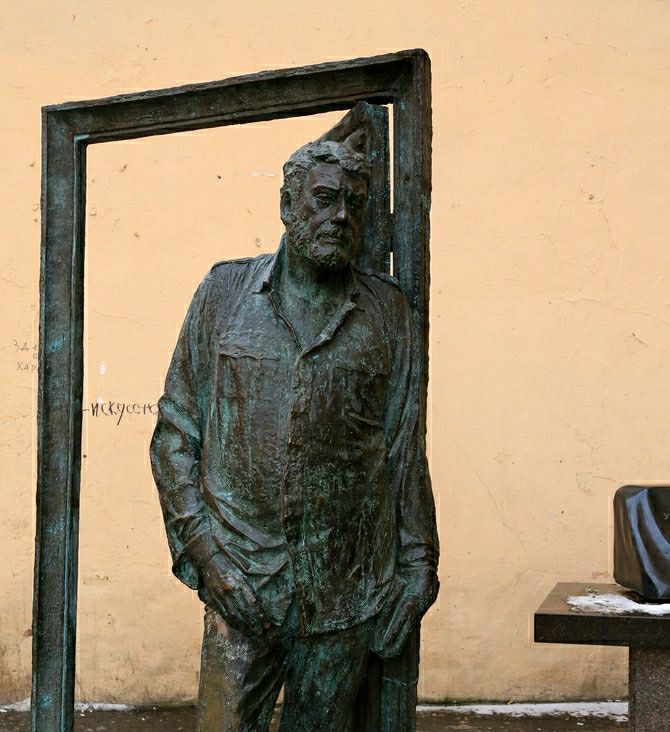 Почему мы смотрим на памятник, а не на фотку? Потому что это редкий случай, когда памятник запилили всего лишь через 16 лет после смерти чела. В 2016 пипл собрал подписи, губернатор сказал: "ок, норм". Стоит отметить фамилию архитектора — Бухаев. Думаю, Довлатову бы понравилось.