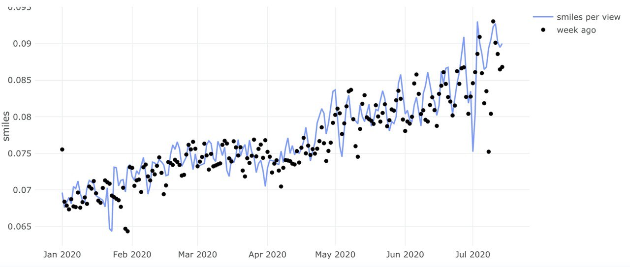 Мы начали с очень низкого smiles rate: всего 5 смайлов на 1000. За три месяца смайлы мы вырастили в 6 раз, до 30 на 1000.