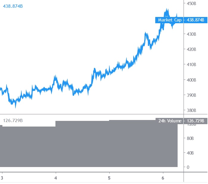 Ethereum price finally started following bitcoin price rally and it broke the USD 425 resistance. ETH even cleared the USD 435 resistance and spiked above the USD 440 level. The price is currently correcting lower, but dips might remain limited below USD 420.