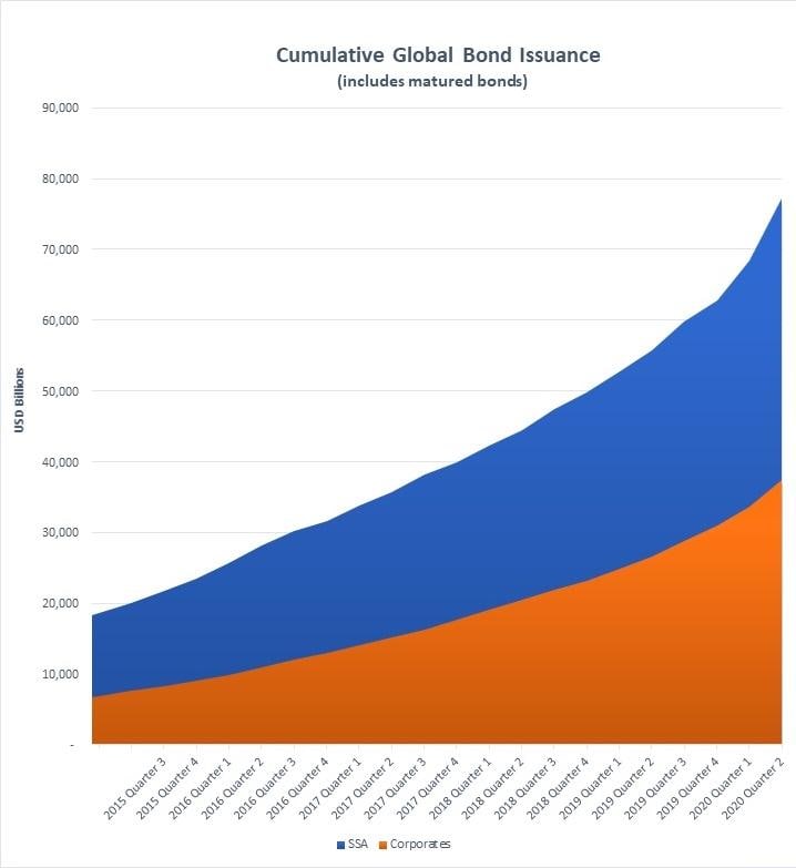 As of August 2020, the overall size of the global bond markets in terms of USD equivalent notional outstanding, is approximately USD 128.3tn, according to estimates by the International Capital Market Association.