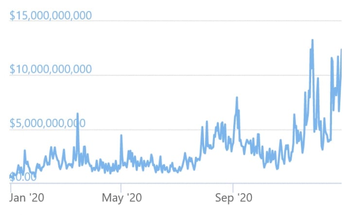 However, in the past month, these numbers rise to USD 467.74m in volume, up 320%, as well as 110,030 users, which is up 133%.