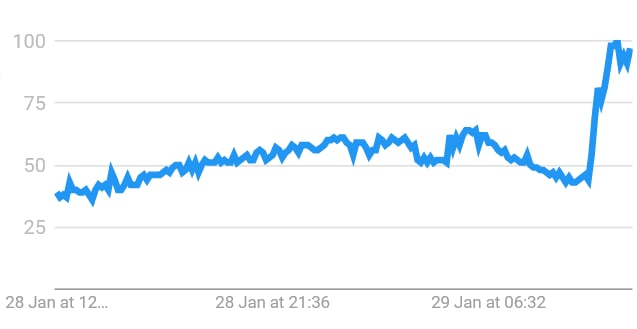 Also, the interest in "bitcoin" spiked following the news, per Google data.