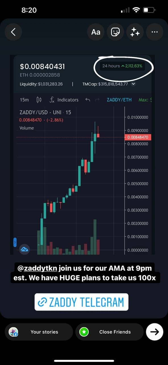 • Join telegram https://news.1rj.ru/str/+ourBepjtTzxjMGRh • To qualify you MUST purchase at least .25 Eth worth or Zaddy tokenWe did over $1,000,000 in volume in our first day and have over 600 holders in less than 24 hours!!!!
