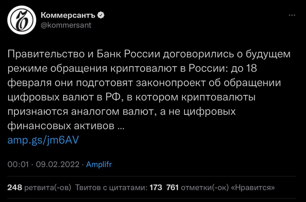 Финальный законопроект обещают представить до 18 февраля. Конкретики про майнинг в нём нет, его будут регулировать отдельно.