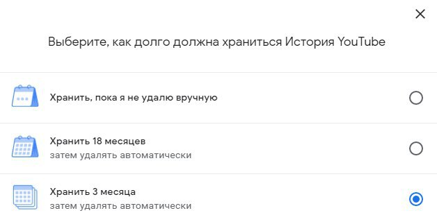 3. Выберите пункт "Хранить 18 месяцев" или "Хранить 3 месяца". После указанного срока история будет удаляться автоматически.
