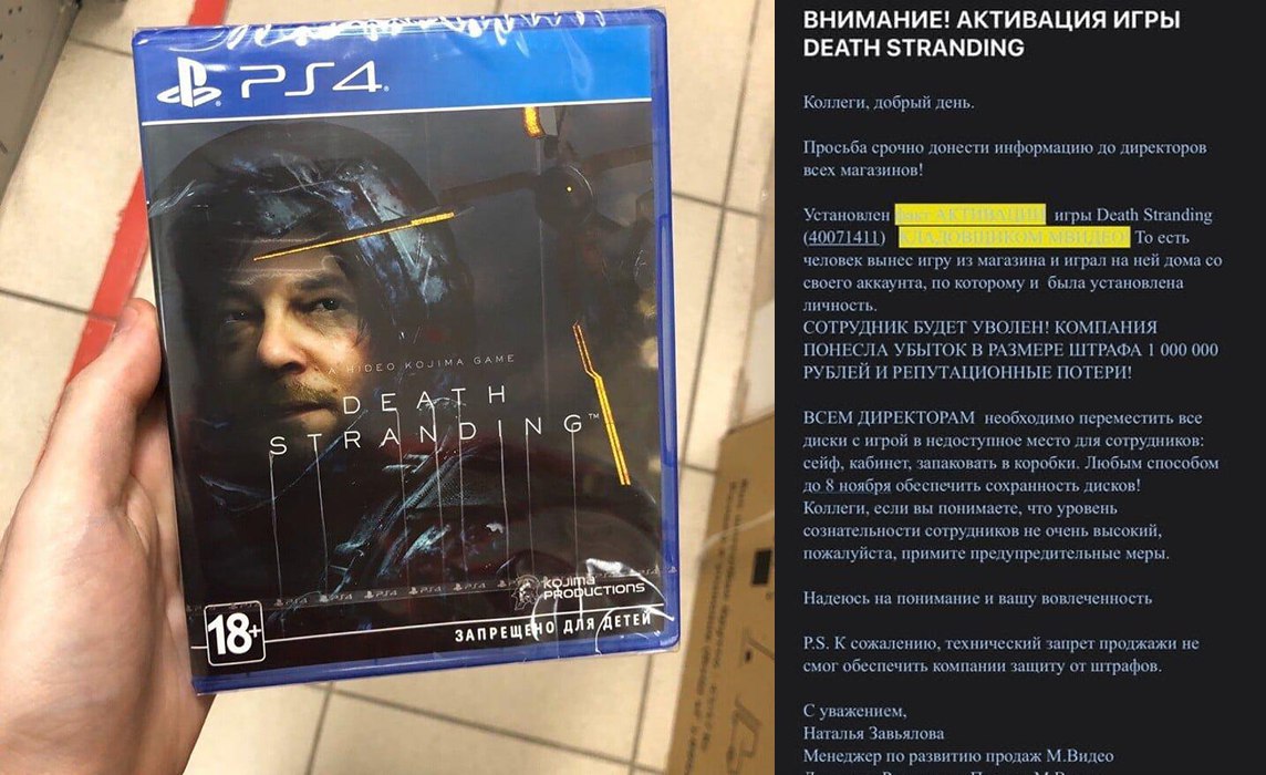 Кладовщик сети магазинов вынес диск с игрой "Death Stranding", и поиграл в неё за неделю до официального релиза, который в России стартует 8 ноября.
