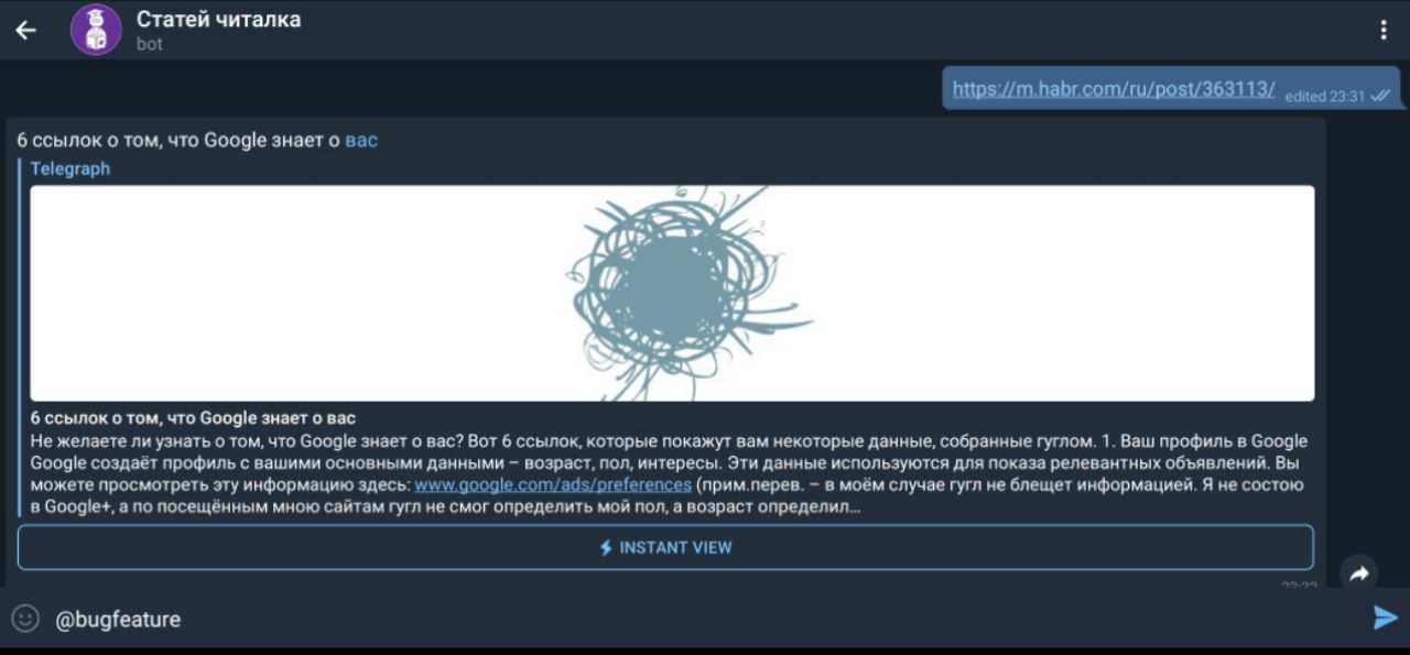 Бот для конвертирования веб страницы в Telegraph (Instant View)