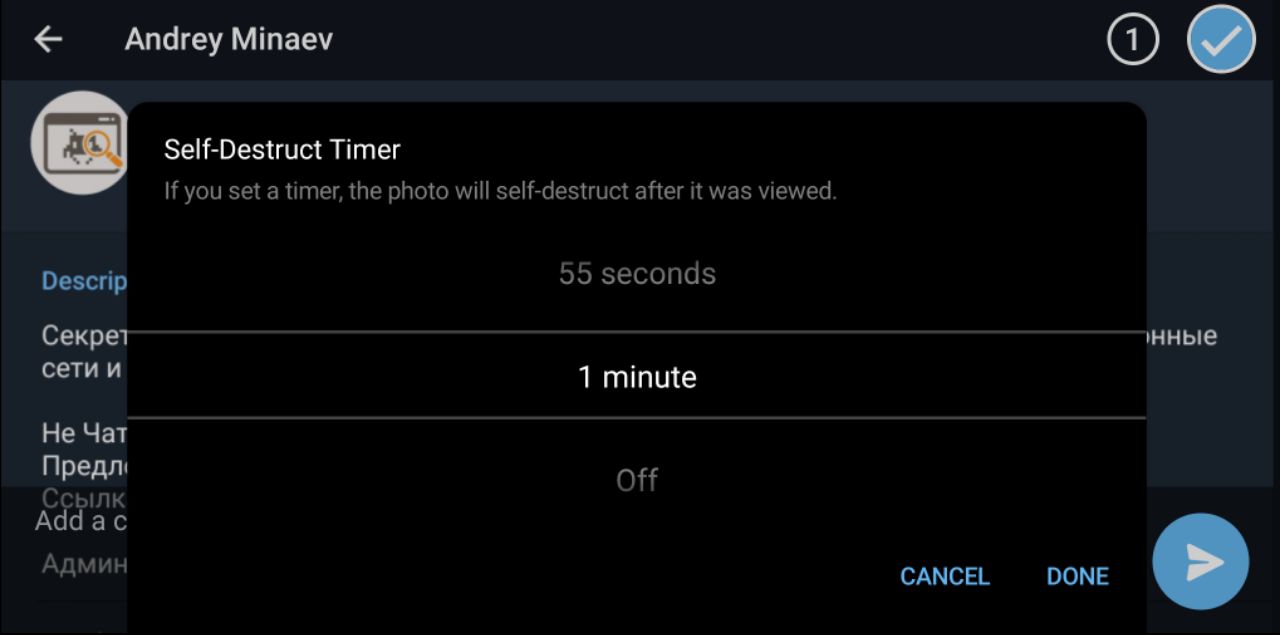 Самоуничтожающееся фото в Telegram