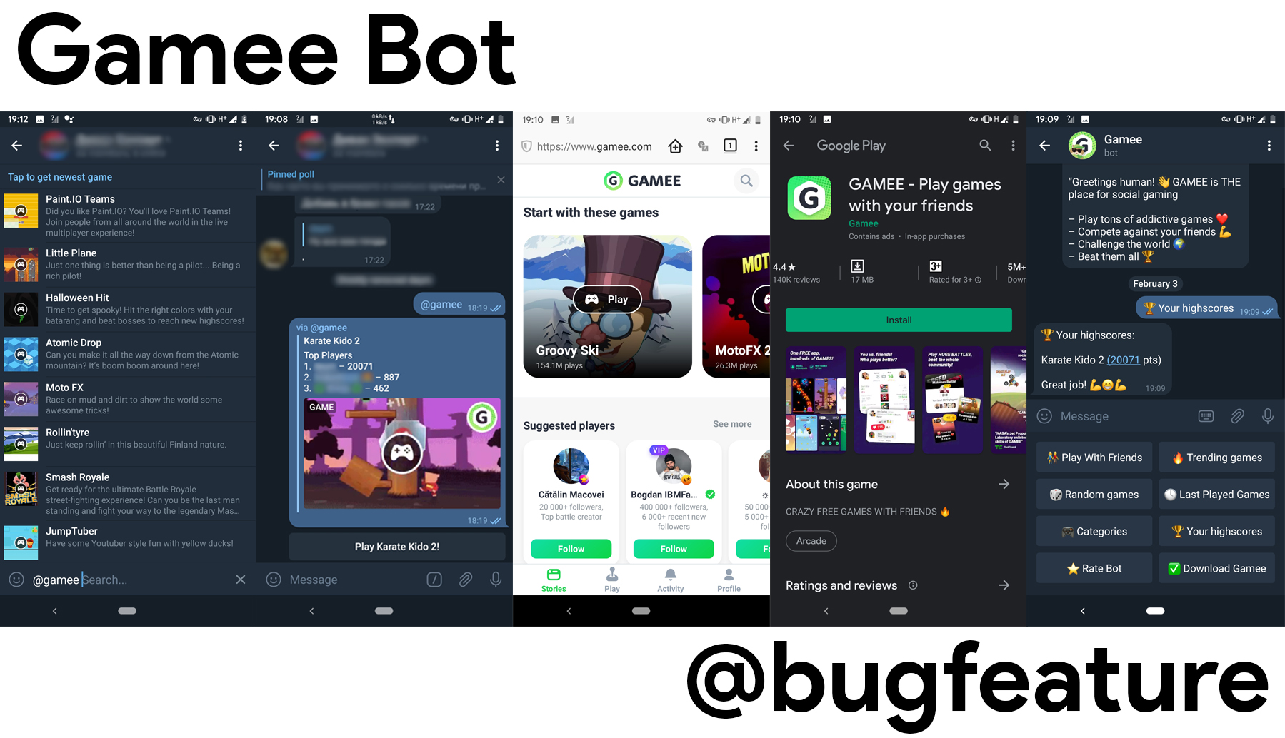 @gamee - верифицированный игровой бот, включающий в себя набор казуальных игр.
