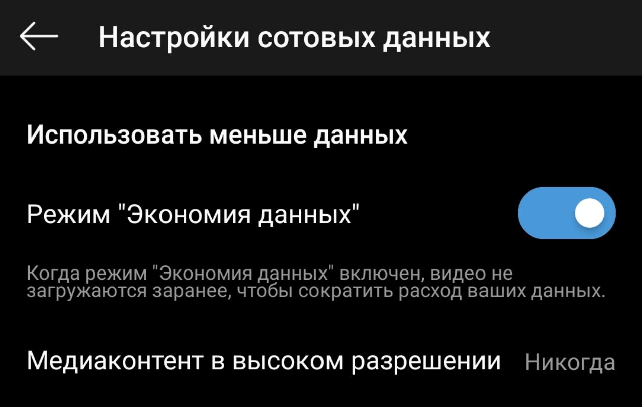 По умолчанию, "Instagram" предзагружает видео, чтобы начинать воспроизведение быстрее. Уменьшите расход интернета отключив эту функцию: