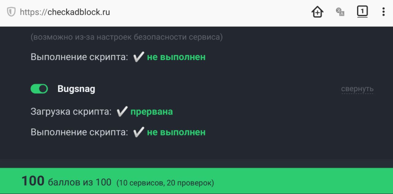 Итого, сайт осуществляет 20 проверок на 10 рекламных сервисах. Также результат теперь измеряется не в процентах, а в баллах.