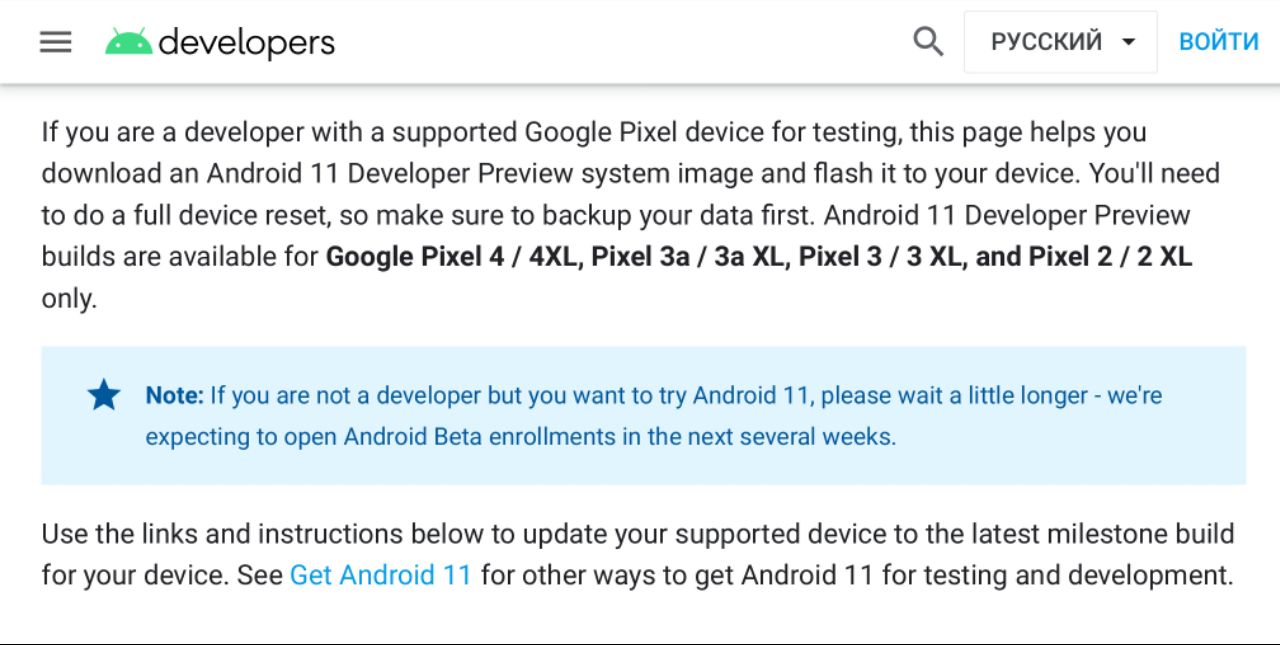 Новая ОС находится на стадии разработки, это значит что список будет пополняться. На данный момент, обновление доступно только для смартфонов Google Pixel, кроме Pixel и Pixel XL.
