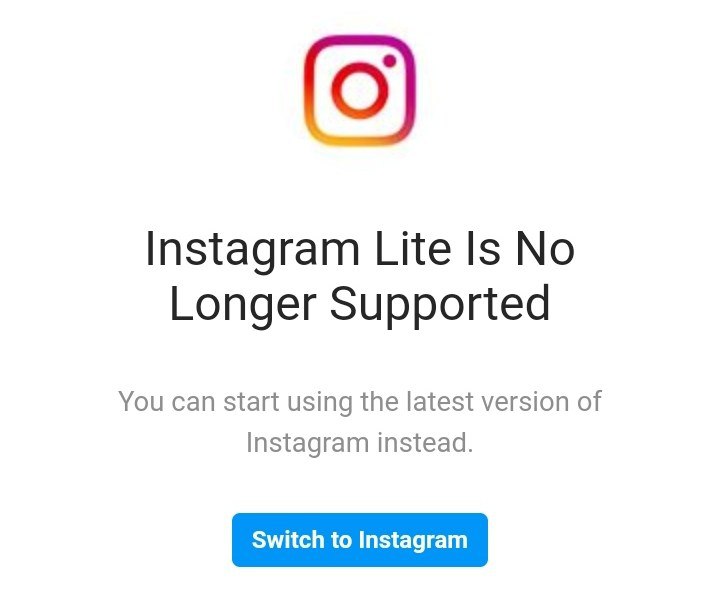 Тем, у кого установлен Instagram Lite, предлагается перейти к полной версии приложения. Из Google Play приложение уже удалено.