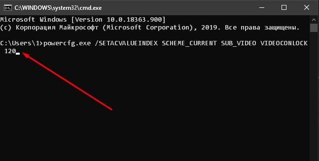 "powercfg.exe /SETACVALUEINDEX SCHEME_CURRENT SUB_VIDEO VIDEOCONLOCK <время>".3. Замените