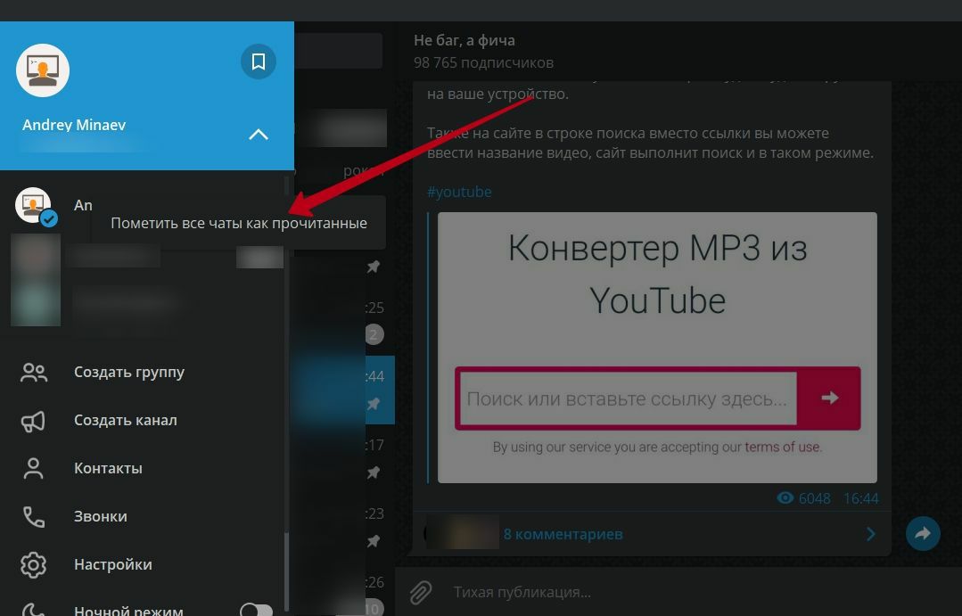Как пометить все чаты прочитанными в Telegram Desktop?