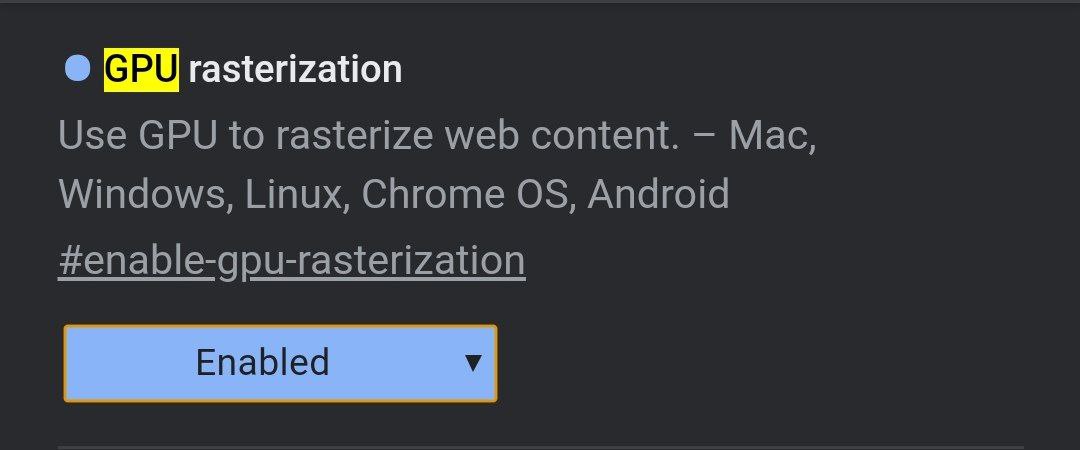 chrome://flags/#enable-gpu-rasterization2. Установите у параметра значение "Enabled".