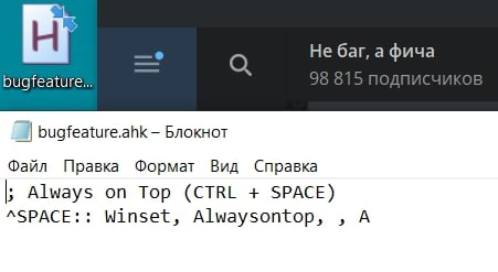 10. Нажмите на окно которое хотите всегда отображать поверх всех окон и нажмите "Ctrl+ Пробел" на клавиатуре.